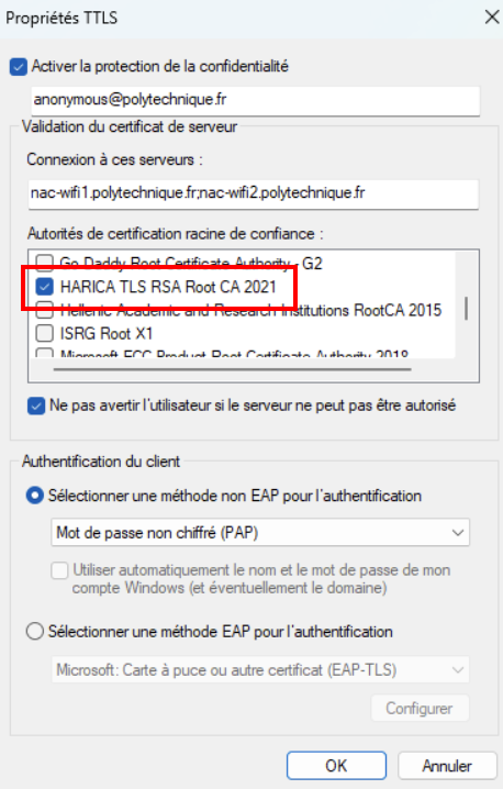Type the following into the field outlined in red : nac-wifi1.polytechnique.fr;nac-wifi2.polytechnique.fr
