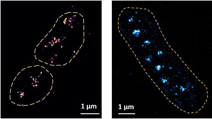 Figure: (left panel) STORM image of FLAG::Rpa2 signal, (right panel) Live-PALM image of Dendra2::Rpa2