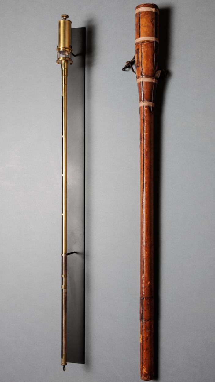 Ce baromètre portatif avec son étui de voyage en cuir fut conçu vers 1800 par Jean-Nicolas Fortin (1750-1831), fabricant d'instruments scientifiques qui travailla pour Lavoisier, Gay-Lussac (X1797), Arago (X1803) et Dulong (X1801).