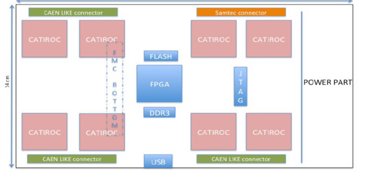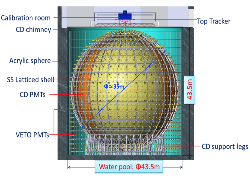 Cette expérience cherche à déterminer la hiérarchie de masse des trois types de neutrinos que l’on connait de nos jours, c’est-à-dire, classifier du plus lourd au plus léger les neutrinos en fonction des autres types de neutrinos. Pour cela, les neutrinos sont envoyés dans une sphère de 38 mètres de diamètre enterrée à 700 mètres sous terre, et vont rencontrer un liquide scintillant de 20 000 tonnes permettant une émission de lumière. Sur les faces de la sphère sont alors disposées 15 000 photorécepteurs de manière à capter cette lumière pour ensuite la convertir en courant électrique. CATIROC va alors avoir un rôle prépondérant, celui de caractériser l’information temporelle ainsi que la charge (en Coulombs) à l’aide de 16 photomultiplicateurs (détecteur de photon) reliés à chaque puce CATIROC.